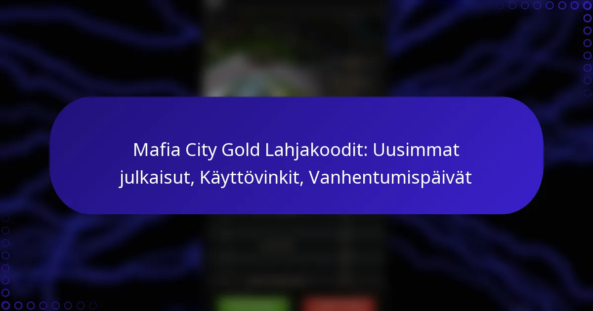 Mafia City Gold Lahjakoodit: Uusimmat julkaisut, Käyttövinkit, Vanhentumispäivät