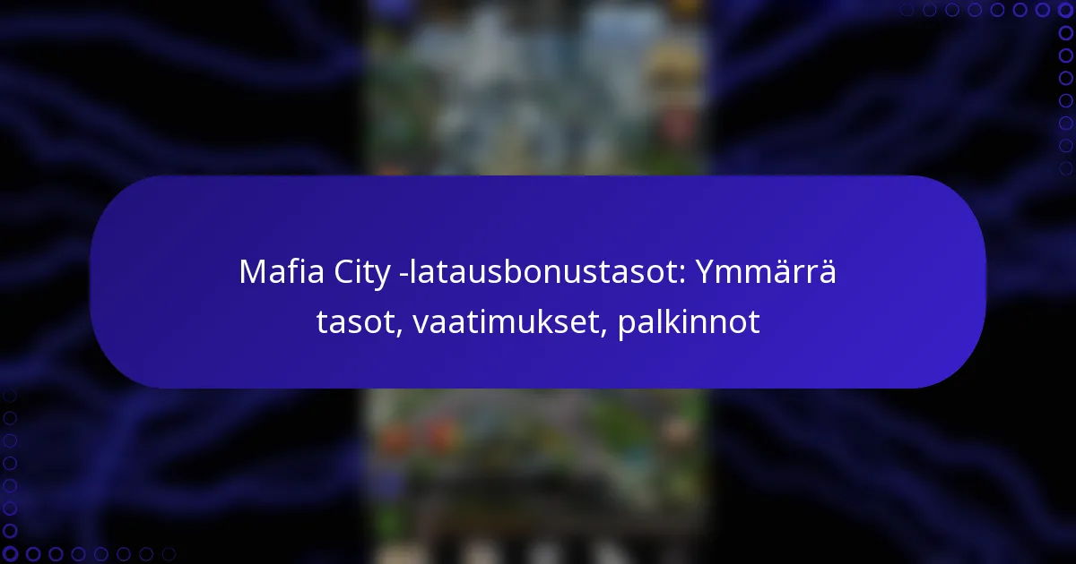 Mafia Cityn latausbonukset ovat palkintoja, joita pelaajat saavat ostaessaan pelin sisäistä valuuttaa tai esineitä. Nämä bonukset voivat parantaa pelikokemusta tarjoamalla lisäresursseja tai eksklusiivisia esineitä, jotka parantavat pelaajan kokemusta.